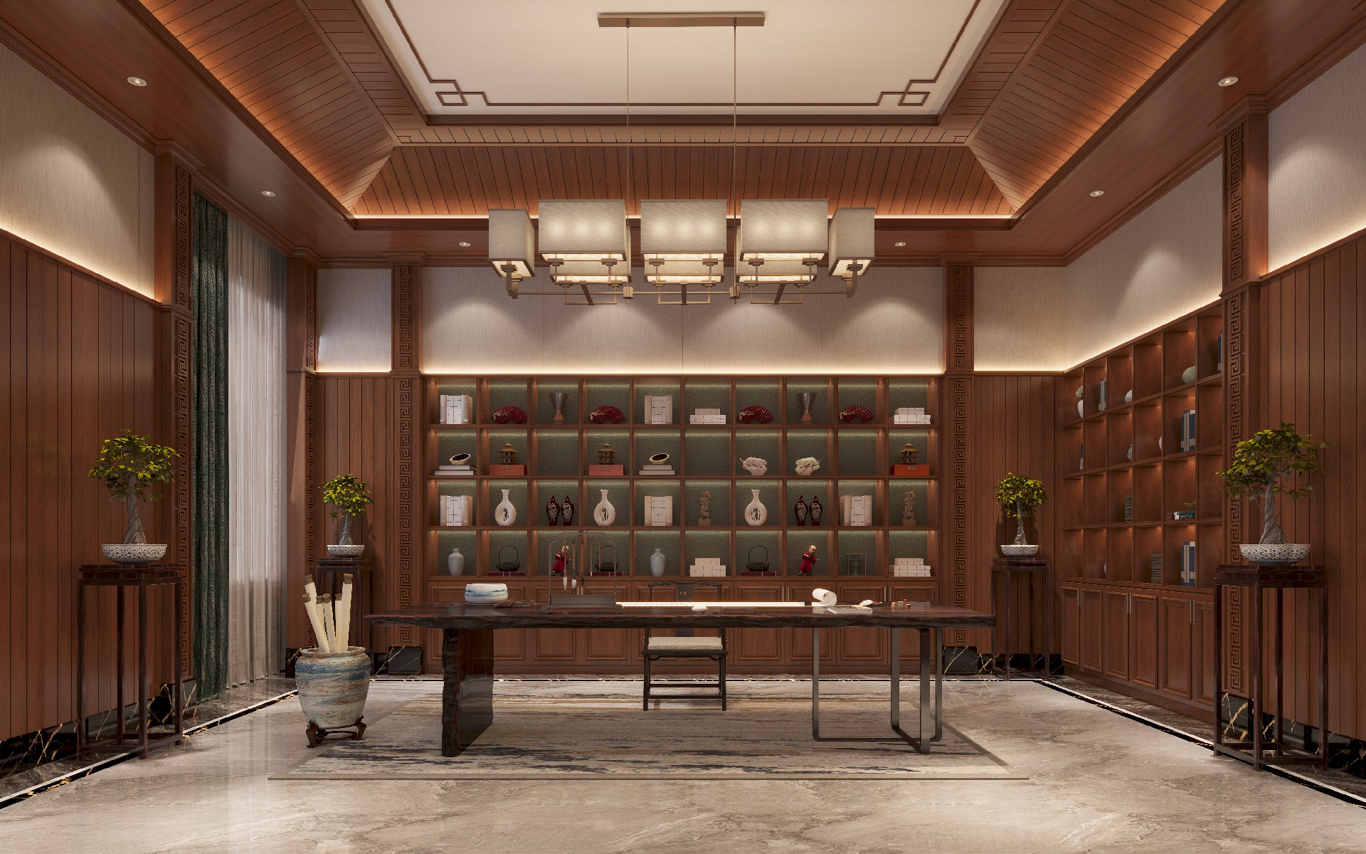 踏入被黃花梨木墻板溫柔環抱的書房靜室??諝庵懈又静牡某料闩c宣紙的微甘,讓人未及開卷,已覺心神安寧。